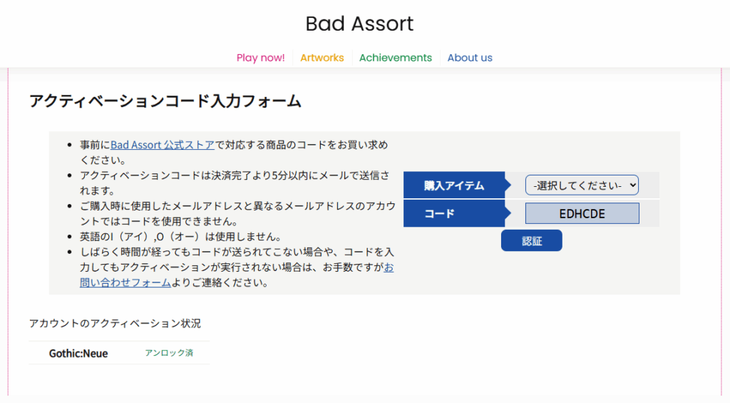 Bad Assort Storeで対応する作品のアクティベーションキーをご購入ください。
