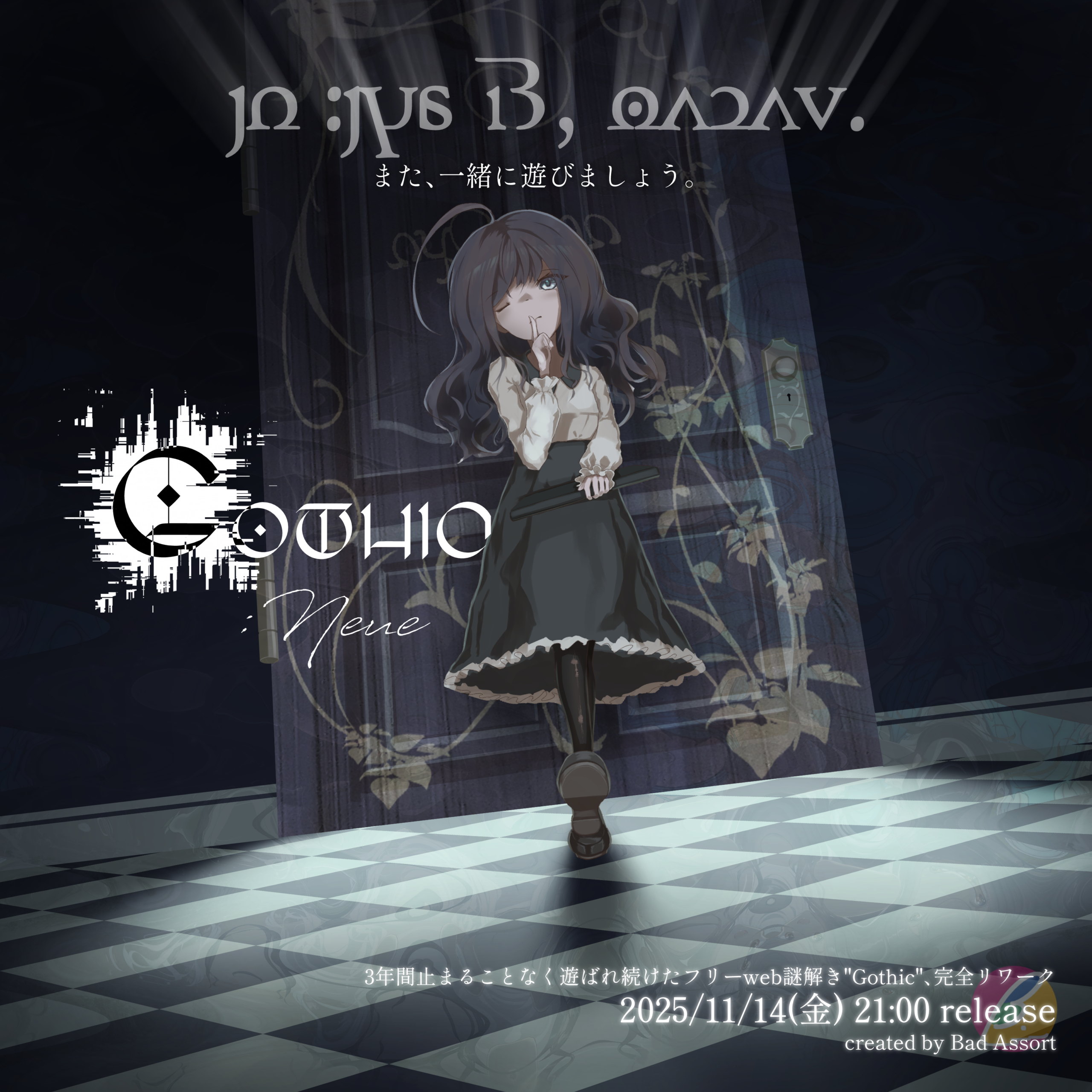 新作Web謎解き脱出ゲーム "Gothic:Neue" の公開に伴うアップデート作業のため、一時的にHPは利用できません。