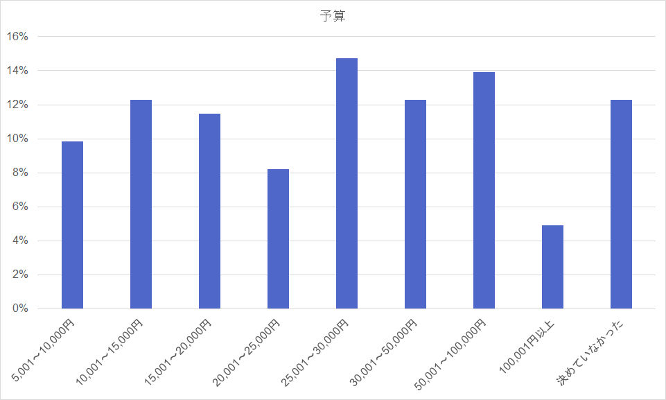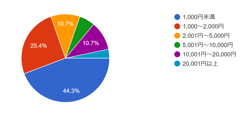これはゲムマ参加者を完全に甘く見ていましたね……。なんと中央値20,000円以上ということで、相当やる気満々の方が多いようです。10万円超の予算を用意してくる猛者も。
