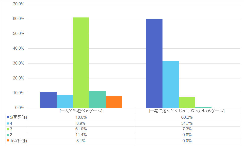 これは妥当な結果だと思います。誰かと一緒に遊ぶ光景を容易に思い浮かべられるゲームこそ欲しくなるということですね。ちなみに今回のアンケート中評価が最も高かったのがこの項目です。