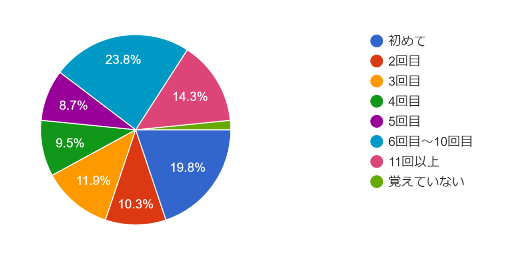 今回が初めて、という方は全体の19.8%でした(本アンケート調べ)。実際はこれよりもう少し多いかもしれません。
