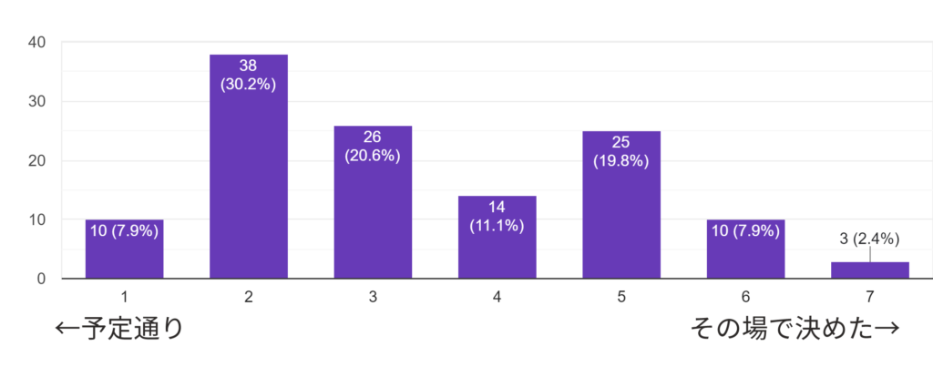 上のグラフを見てわかる通り、本アンケートの回答層は(たぶん)割と早期入場券を買っていた人寄りである、ということも頭に入れつつ見ていった方がいいでしょう。特に後述の予算についてはこのアンケート結果よりは少なめに見積もった方がいいかもしれませんね。
